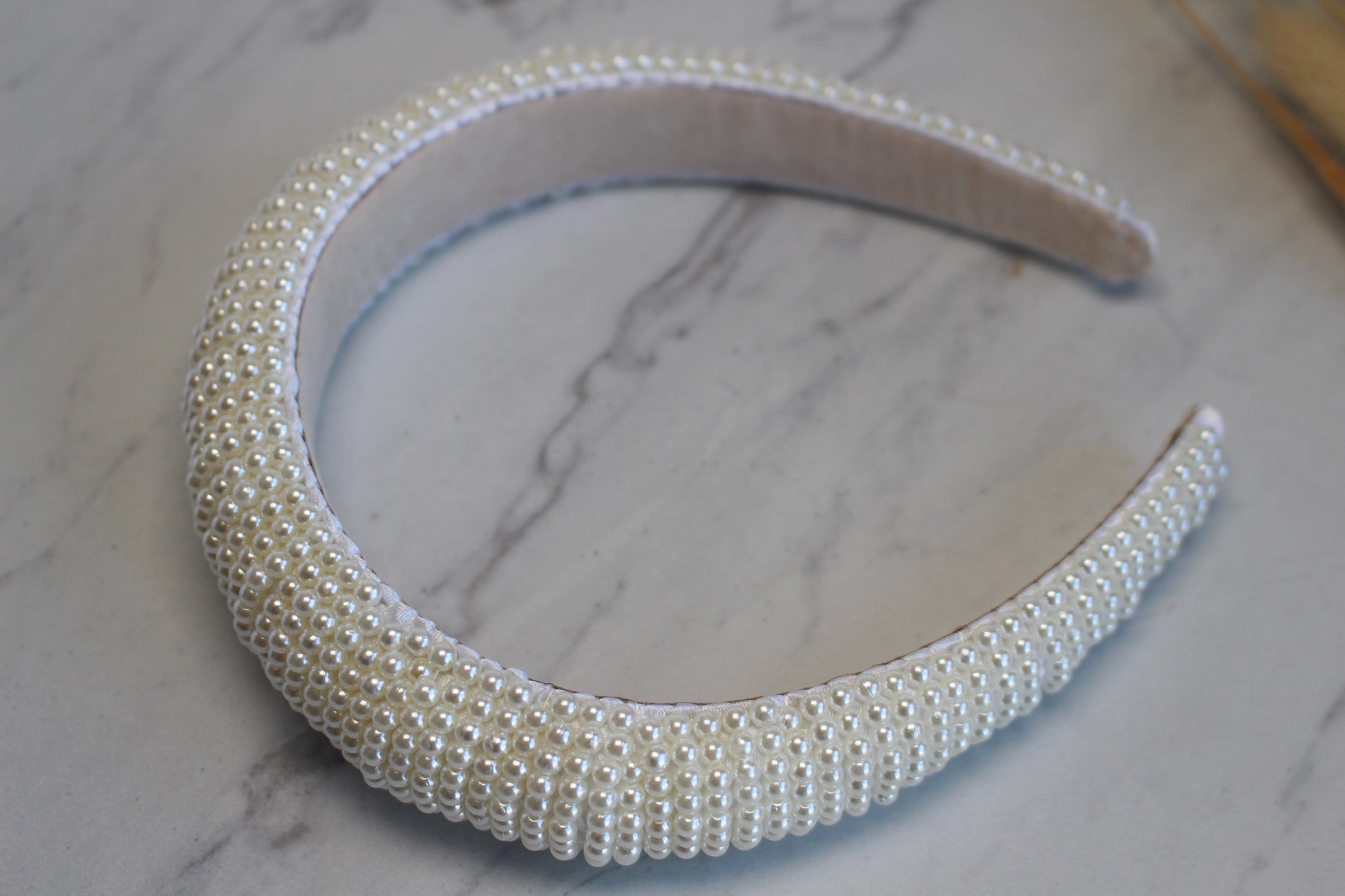 Elevate your wedding ensemble with our exquisite Bridal Headbands, a meticulously crafted piece that showcases true artistry. Indulge in the luxury and grandeur of a custom-made accessory that perfectly reflects your individual style. Our bespoke Pearl Headband, adorned with delicately placed pearls, exemplifies sophistication and exclusivity. Each headband is masterfully customized, making it a one-of-a-kind addition to your ensemble. Complete your look with this opulent headband, fit for the most special of occasions.